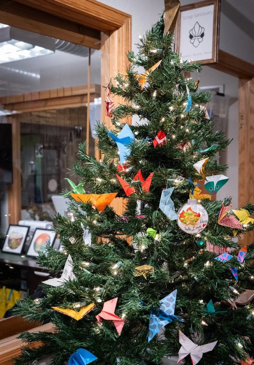 To honor that special part of who he was, Petrichor Collective member Beth Pushchak suggested we make Origami in his memory to decorate the Christmas tree at Petrichor Collective Studios. So we gathered, folded paper, shared stories, and thought about how much he meant to each of us. It felt like a way to keep him close through something he loved.